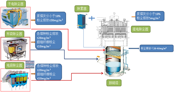 系統介紹 濕電除塵布置在脫硫塔出口側,主要用來對PM2.5等細微顆粒再凈化,以確保排放濃度≤5mg/Nm3,同時對水霧、氣溶膠、汞等危害物有較好的去除功能。主要技術指標SO3酸霧去除率:80%-95%水霧去除率:≥80%煙塵去除率:≥90%排煙不透明度:≤10%汞去除率:30%-40% 排放濃度:≤5mg/m3濕電本體壓降:約300Pa工藝流程圖